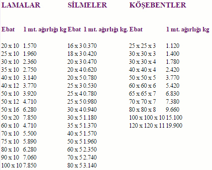 Sıcak haddelenmiş kalınlığı 10 ila 60mm aralığında genişlik 10 ila 150mm arasında değişine demirler.
