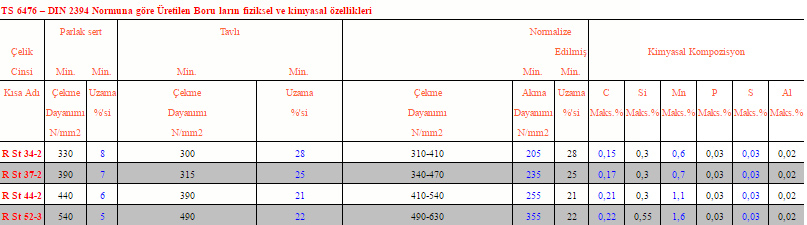 Aksi Belirtilmedikçe Boru Kalitesi S275 dir. Sipariş üzerine s355 üretimi yapılır. S420 ve S460 Üretimii olmayıp bilgi amaçlı verilmiştir.