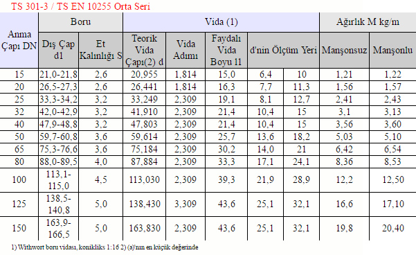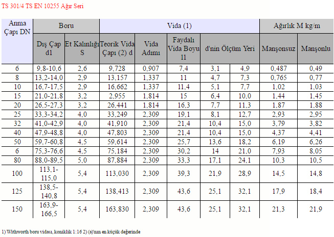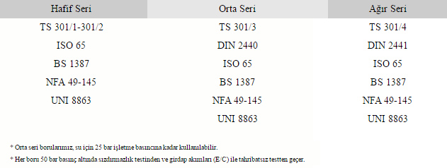 • TS 301/ 1-2-3-4, TS 1997, TS 416, EN 10255, TS RN 10217-1.