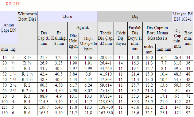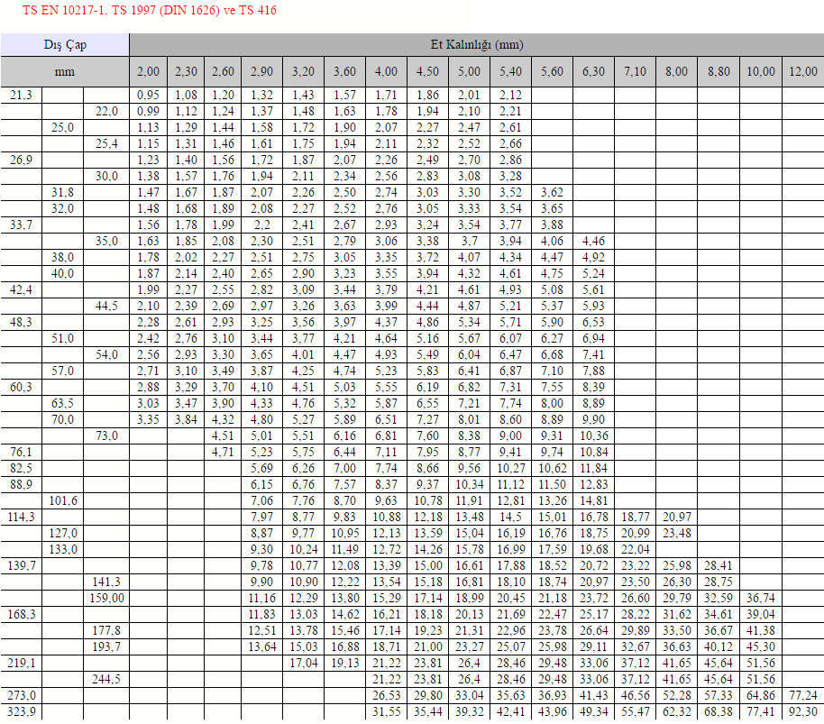 ● Ağırlık                                   ± % 10 (Bir boy boruda standarda göre değişmektedir.)