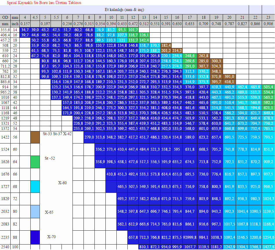 ● Boy                               Boru boyu standaart 6 m’dir. Özel siparişlerde 5 ile 12.80 m arası boylarda teslim edilebilmektedir.